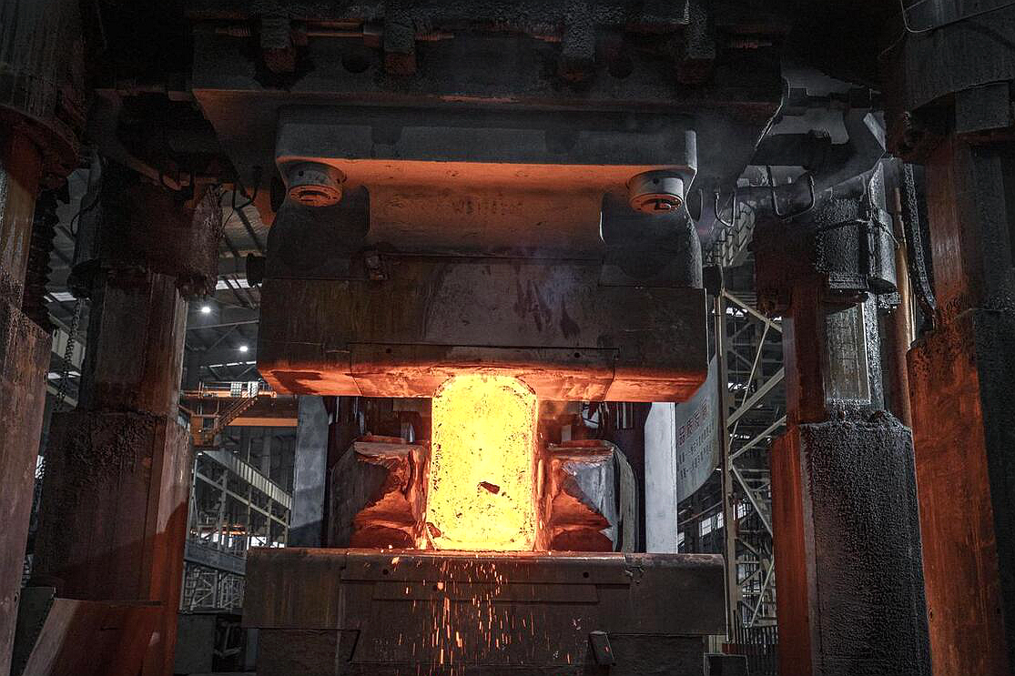 Forging: The heated alloy is placed under massive compressive forces exerted by hydraulic presses or hammers, transforming the material into its desired shape. This shaping process also aligns the alloy's grain structure, enhancing its strength and durability.